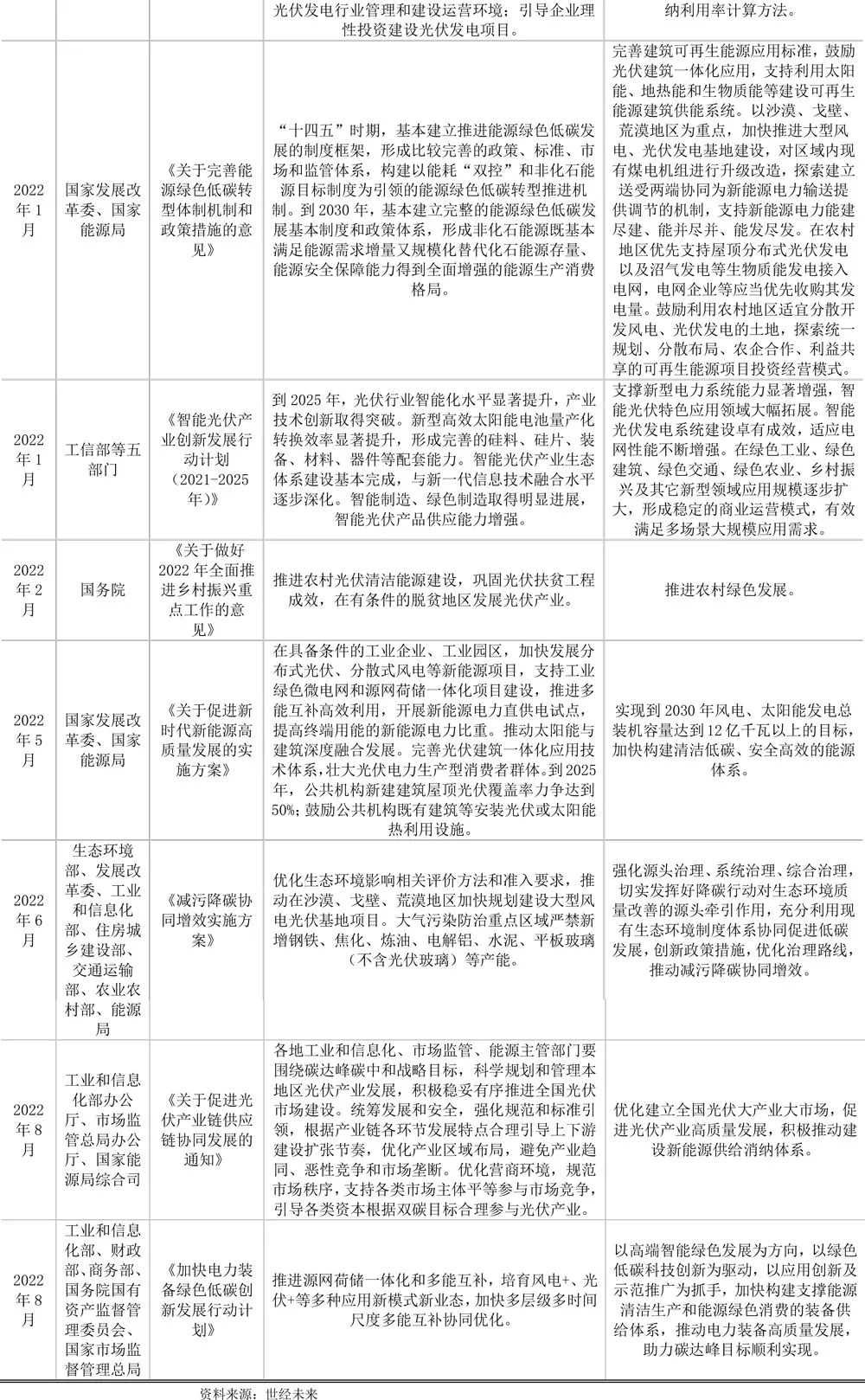 2022年8月,工業和信息化部辦公廳、市場監管總局辦公廳、國家能源局綜合司聯合印發《關于促進光伏產業鏈供應鏈協同發展的通知》(以下簡稱《通知》),部署促進光伏產業鏈供應鏈協同發展,提出立足長遠目標、優化產業布局,鼓勵創新進步、規范行業秩序,加強系統對接、深化全鏈合作,支持協同發展、穩定產業供需,堅持統籌發力、加強宣傳引導等五項具體舉措,旨在優化建立全國光伏大產業大市場,促進光伏產業高質量發展,積極推動建設新能源供給消納體系。